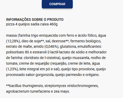 Palavras-chave: PADARIA ROTISIEIRA PIZZA CONGELADA