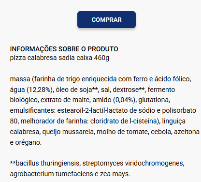Palavras-chave: PADARIA ROTISIEIRA PIZZA CONGELADA