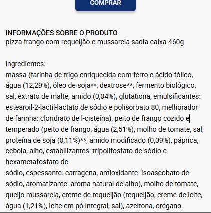 Palavras-chave: PADARIA ROTISIEIRA PIZZA CONGELADA